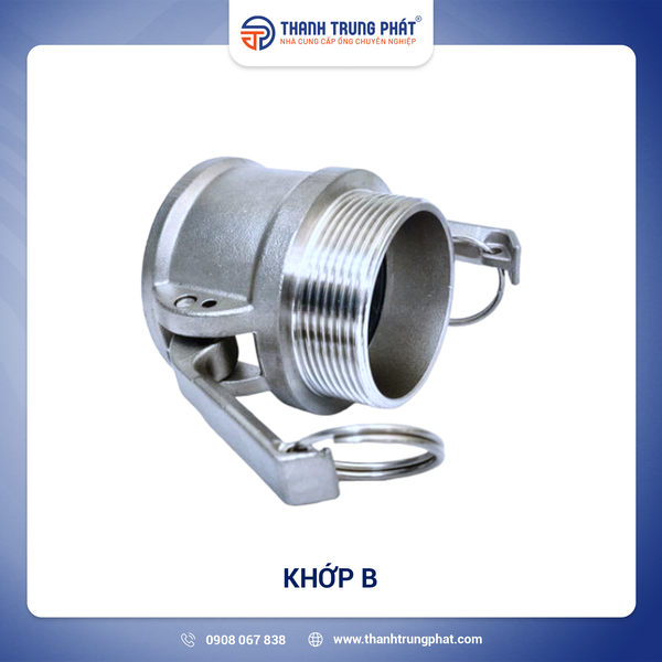- Kiểu B: Đầu cái có cánh cam, kết nối với đầu đực kiểu A, E hoặc F. Thường dùng trong hệ thống dẫn chất lỏng và khí. Với thiết kế chắc chắn, loại này giúp giảm thiểu sự rung lắc của đường ống, tăng độ an toàn cho hệ thống.
